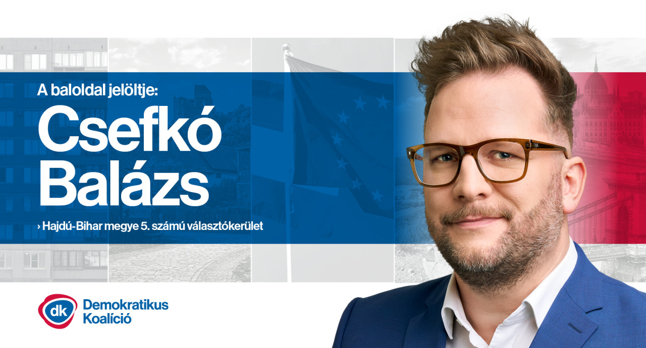 Csefkó Balázs vagyok, a Demokratikus Koalíció országgyűlési képviselőjelöltje Hajdúszoboszlótól Püspökladányig. Rádiós újságíróként kezdtem, jelenleg a DK projektvezetője és programszervezője vagyok. Egyetemi éveim alatt szerettem bele a Hortobágyba és az Alföldbe, azóta is kötődöm ehhez a térséghez.